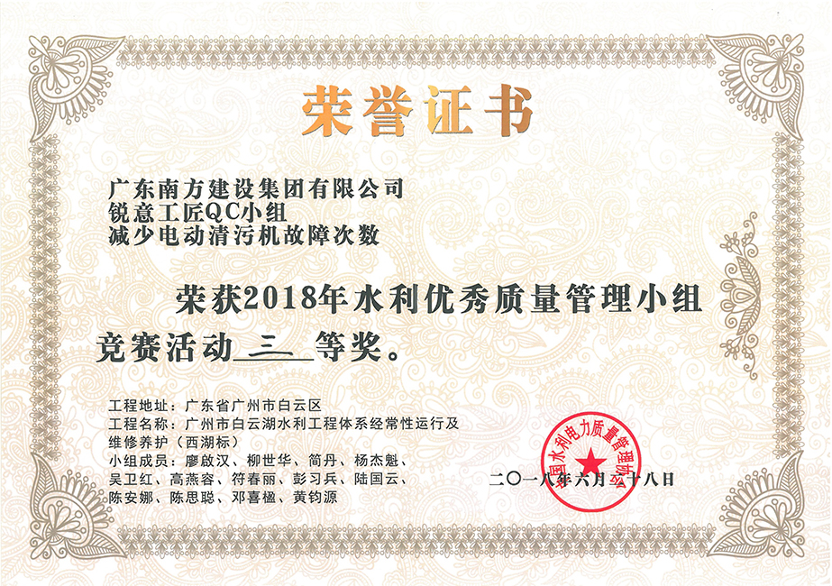 南方-2018年水利優(yōu)秀質(zhì)量管理小組競(jìng)賽活動(dòng)三等獎(jiǎng)
