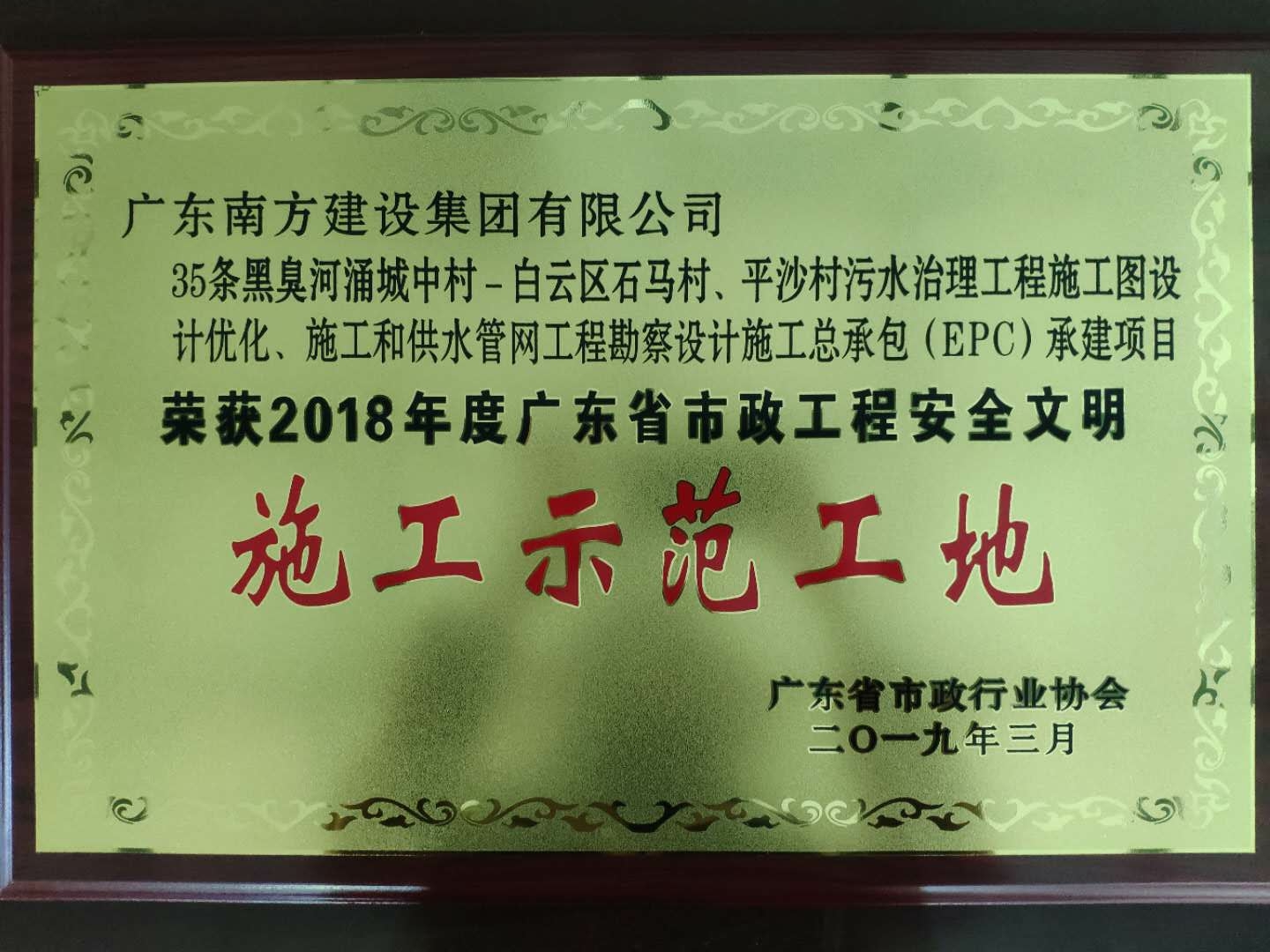 • 2018年度廣東省市政工程安全文明施工示范工地-35條黑臭河涌城中村-白云區(qū)石馬村、平沙村污水治理工程