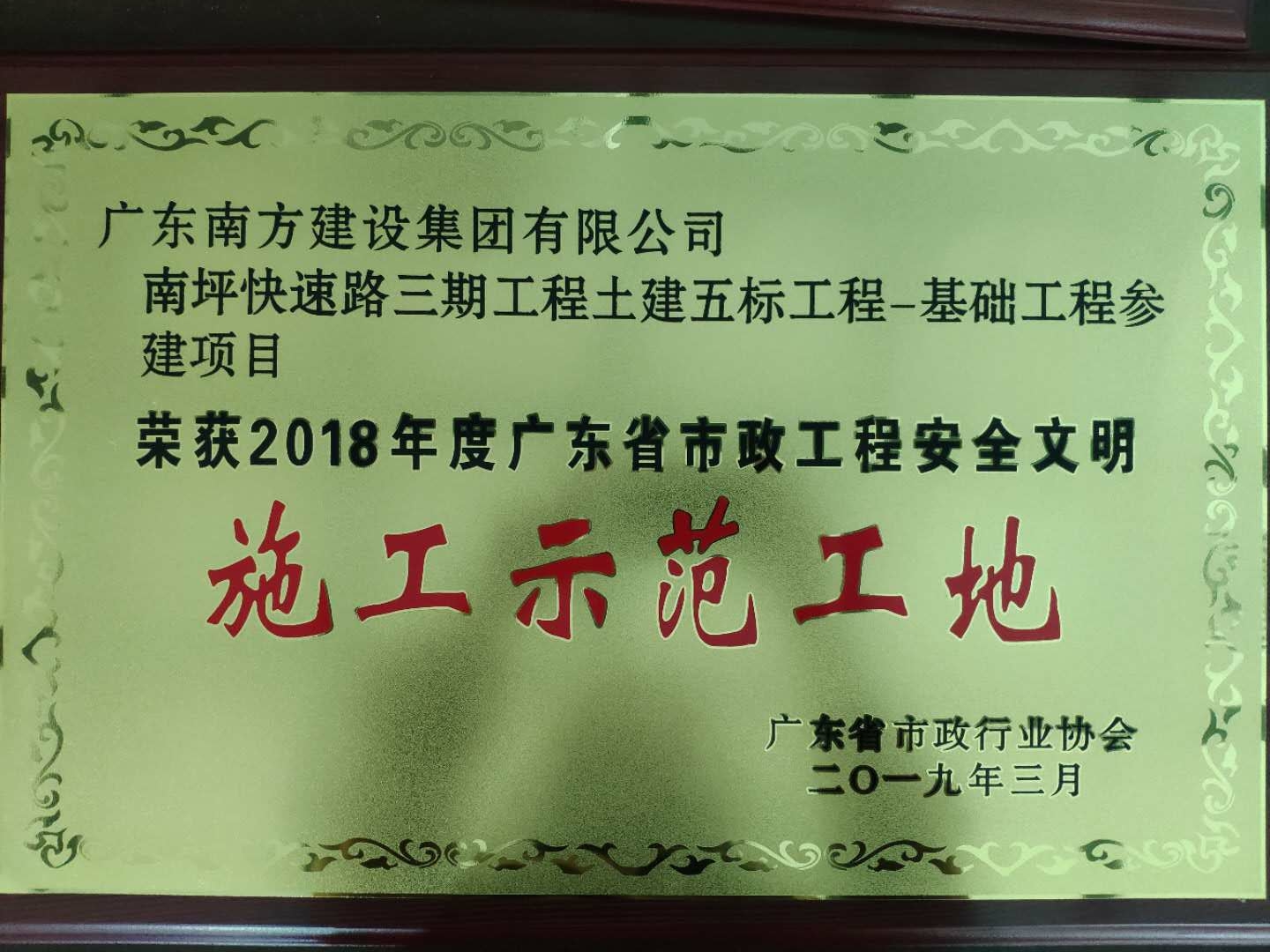 • 2018年度廣東省市政工程安全文明施工示范工地-南坪快速路三期工程五標(biāo)工程-基礎(chǔ)工程