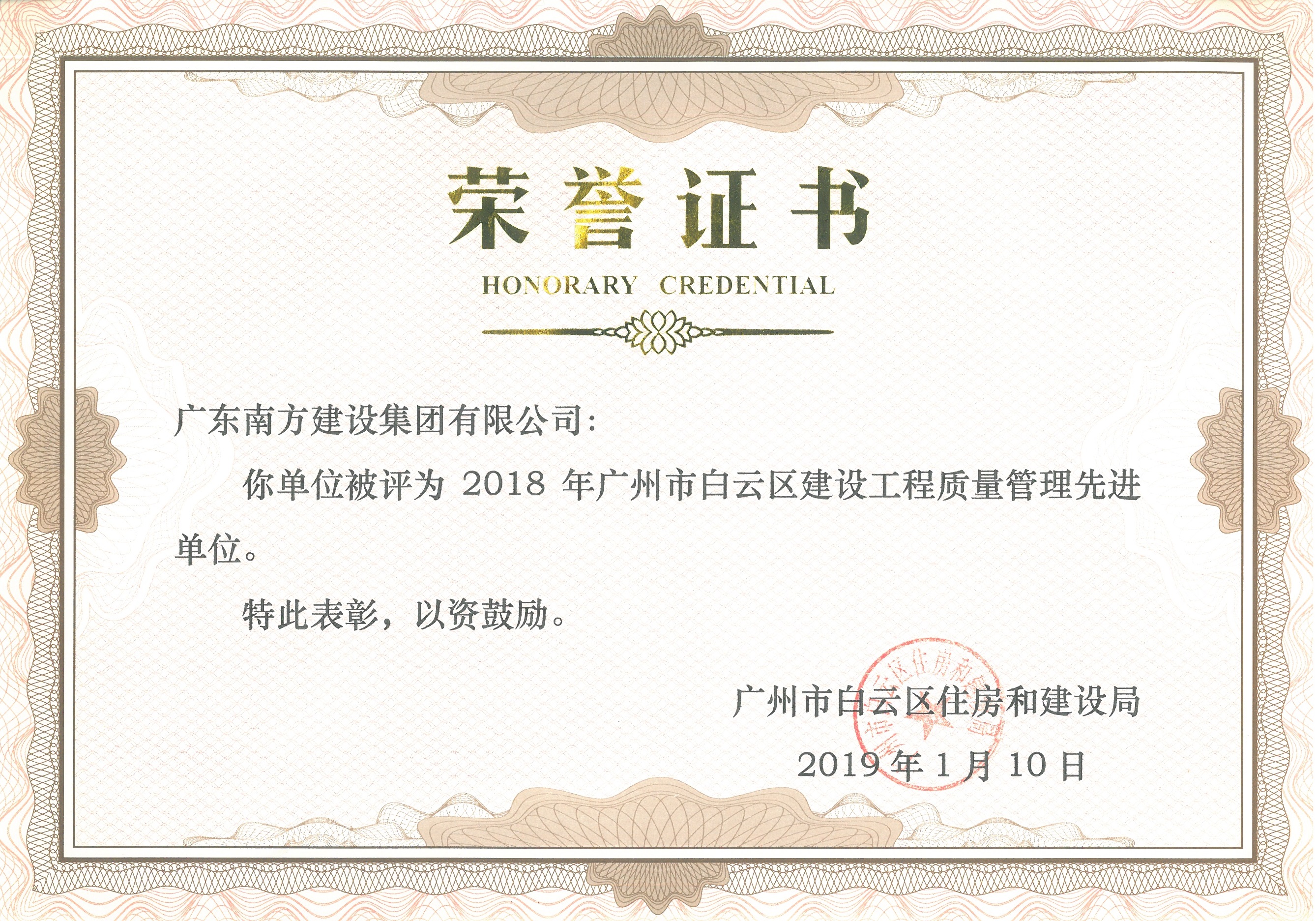 • 2018年廣州市白云區(qū)建設(shè)工程質(zhì)量管理先進(jìn)單位