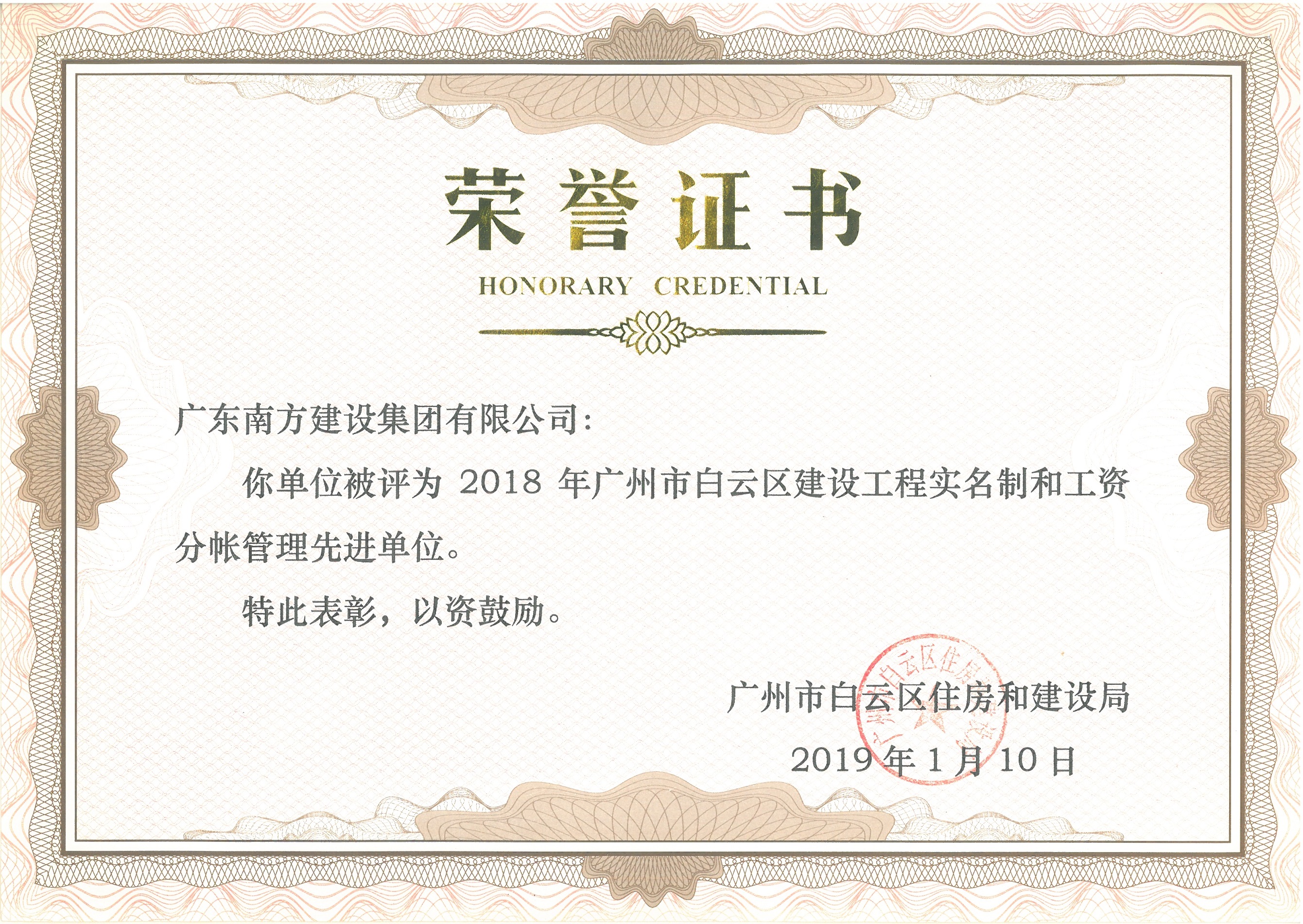 • 2018年廣州市白云區(qū)建設(shè)工程實(shí)名制和工資分帳管理先進(jìn)單位