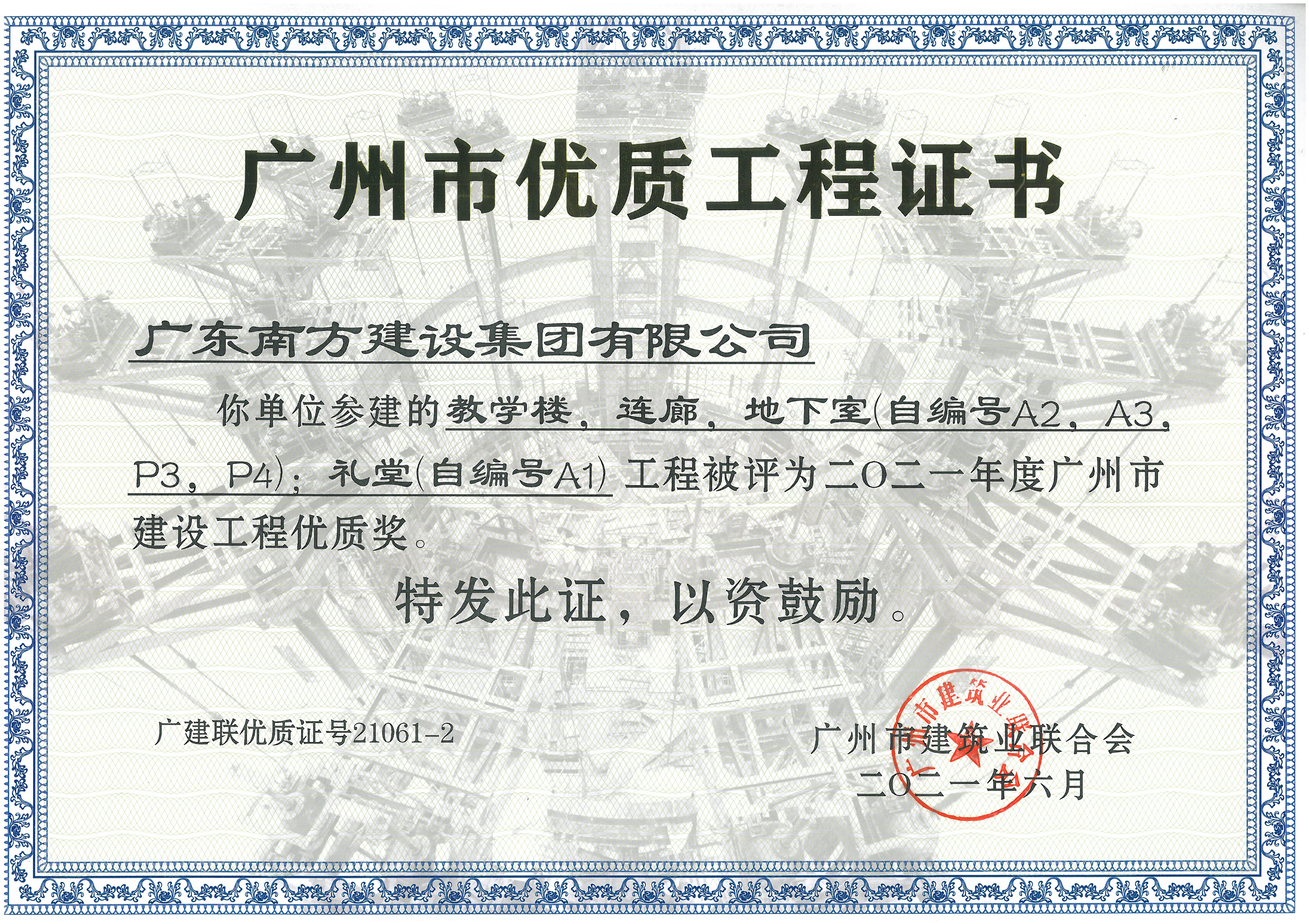 2021廣州市建設(shè)工程質(zhì)量五羊杯獎