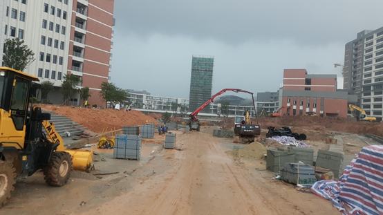 施工現(xiàn)場挖掘機(jī)正忙碌地整平主干路面,運(yùn)輸車絡(luò)繹不絕地運(yùn)送泥土和石板進(jìn)場?,F(xiàn)場熱火朝天,時(shí)間緊任務(wù)急,項(xiàng)目部全體人員攢足了勁,擼起袖子埋頭苦干,務(wù)必保證在9月份新學(xué)期開學(xué)前完成竣工目標(biāo)。