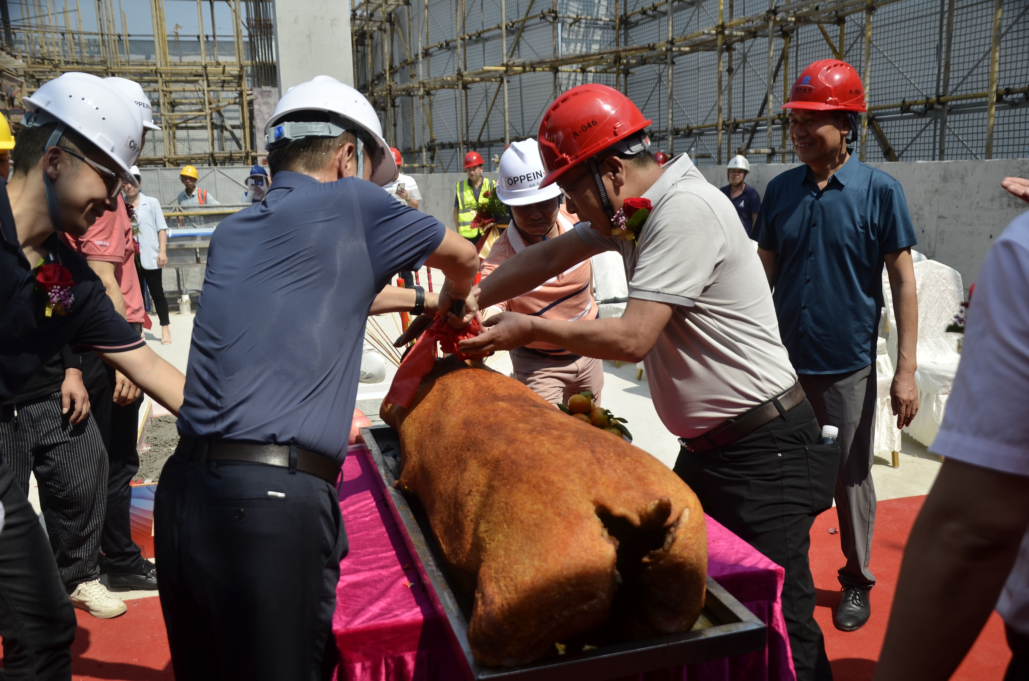 在全員見證下,出席的嘉賓們一同為項目封頂澆筑最后一方混凝土,承載滿滿祝福與期望。